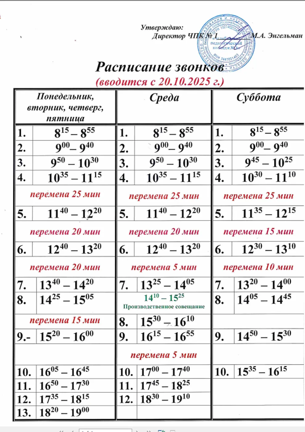 ПОЛОЖЕНИЕ о расписании учебных занятий. Расписание звонков.