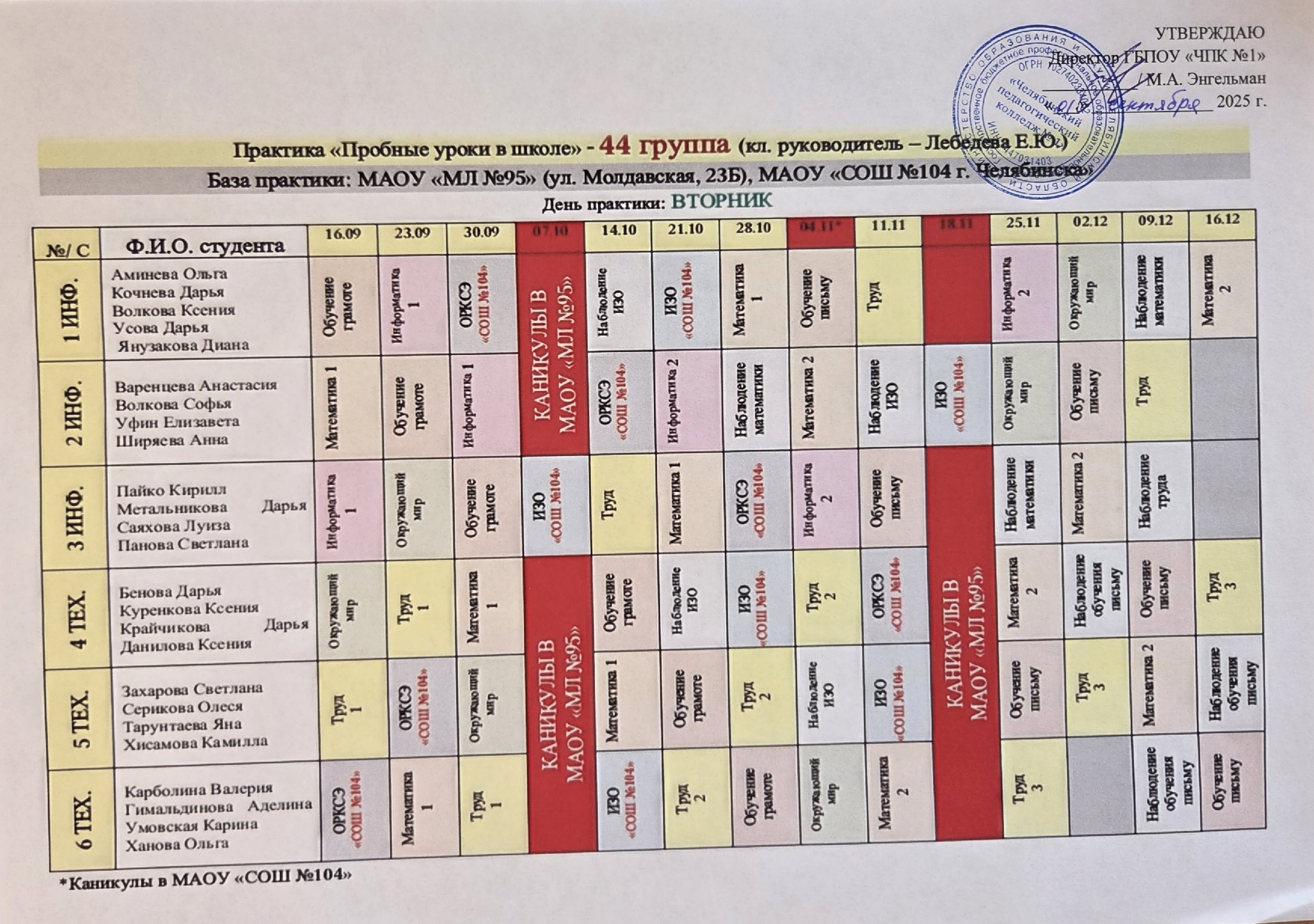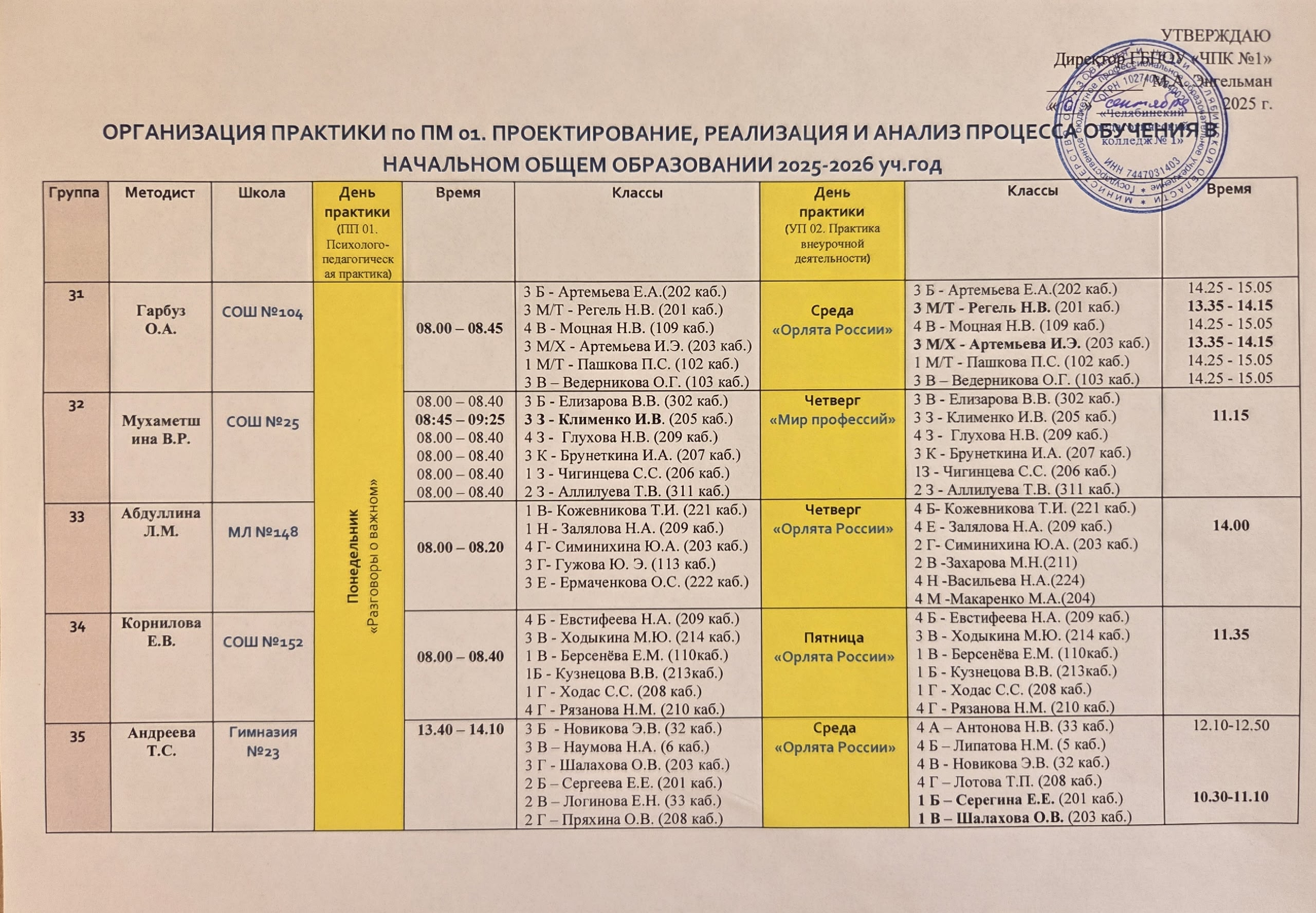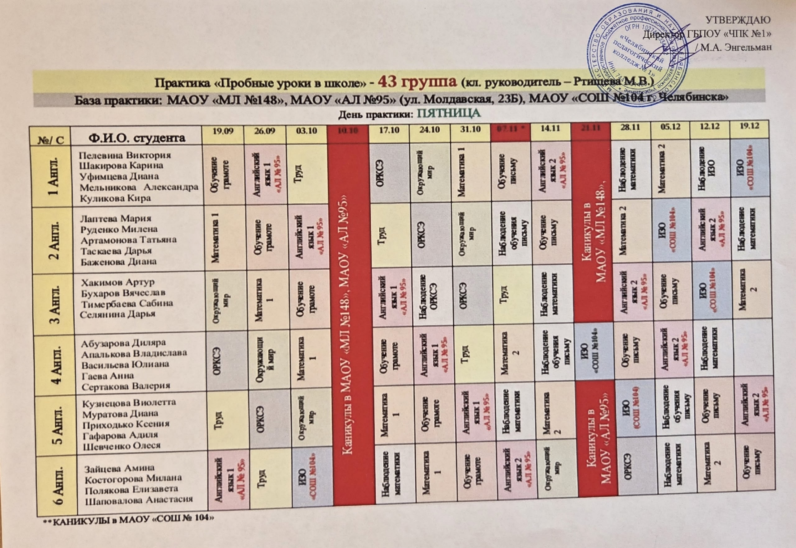 Расписание практической подготовки студентов ГБПОУ «ЧПК №1»