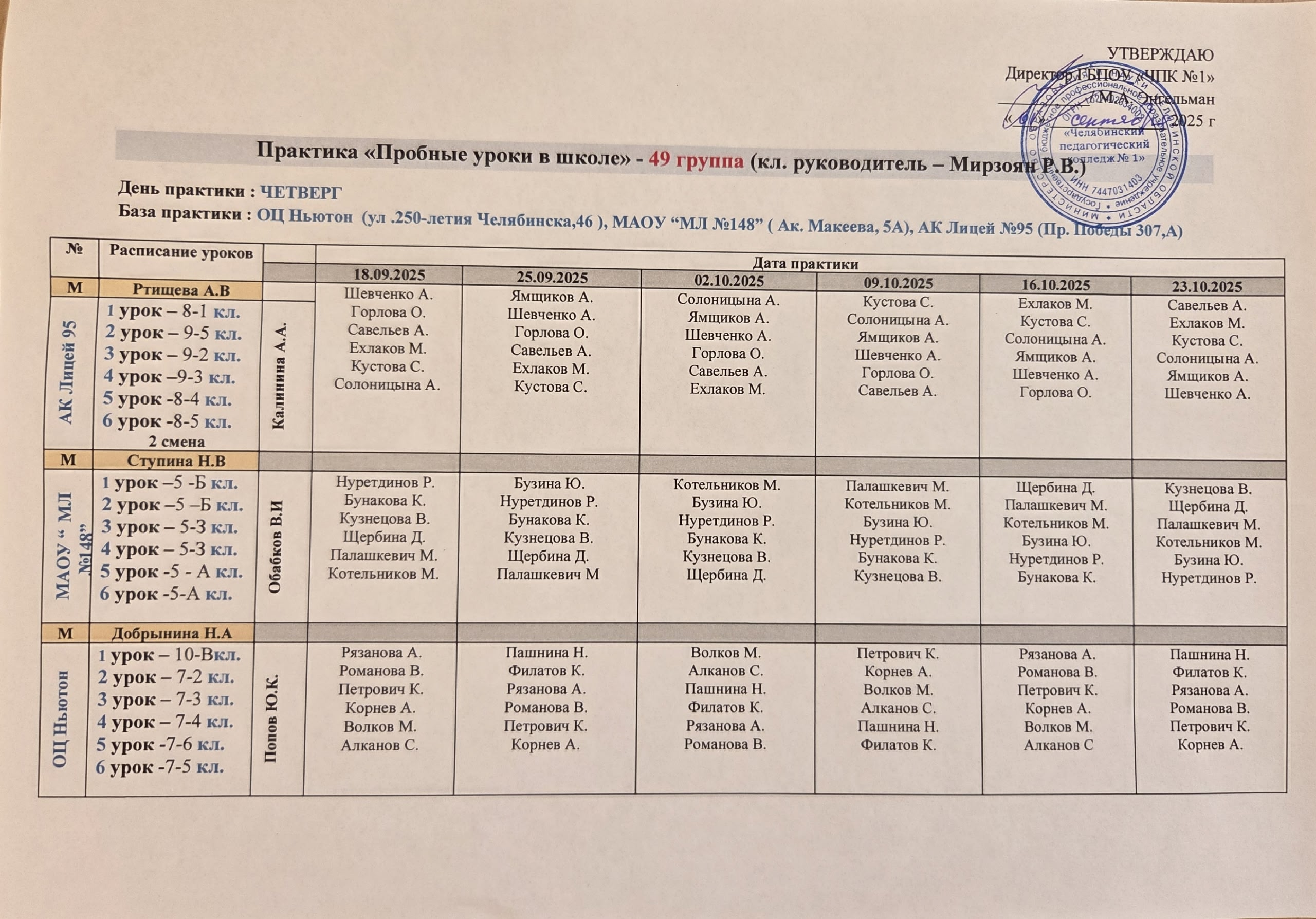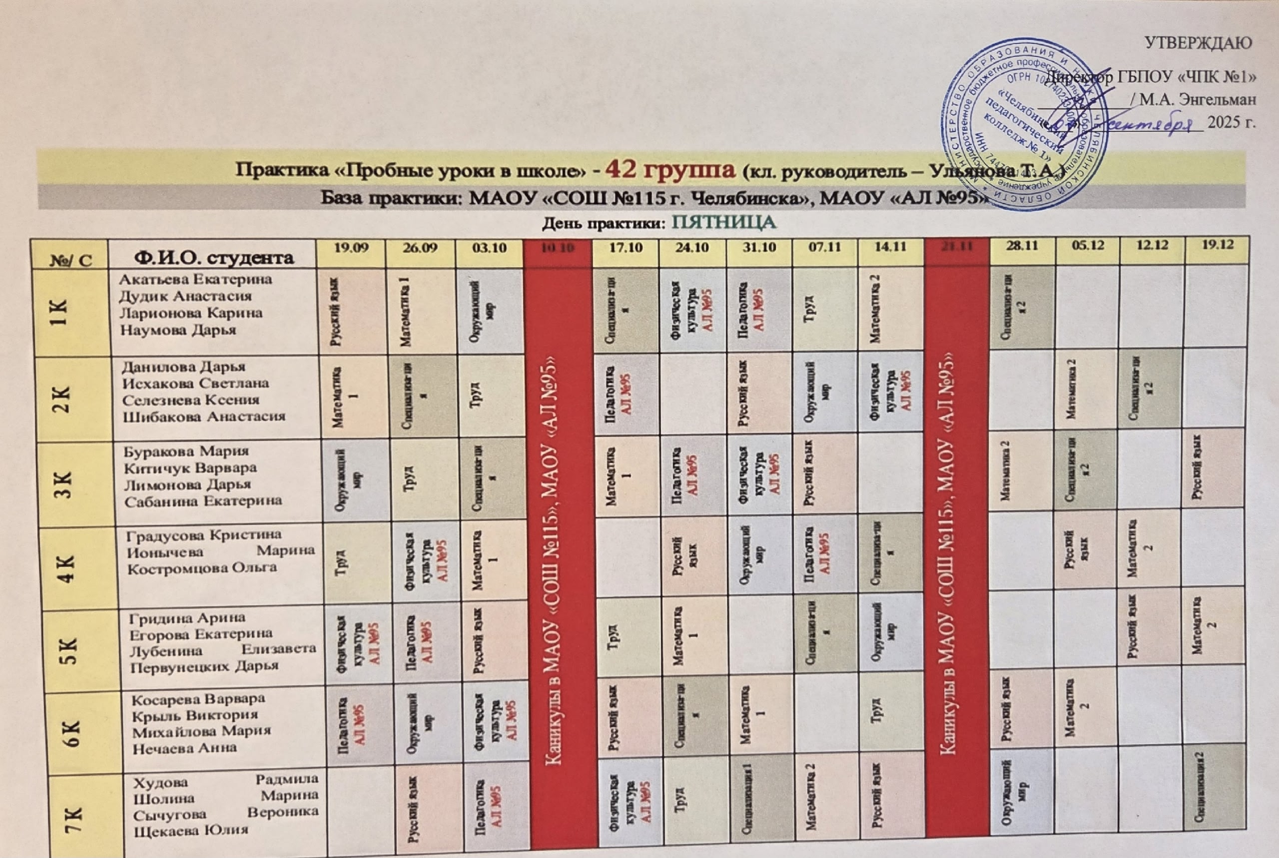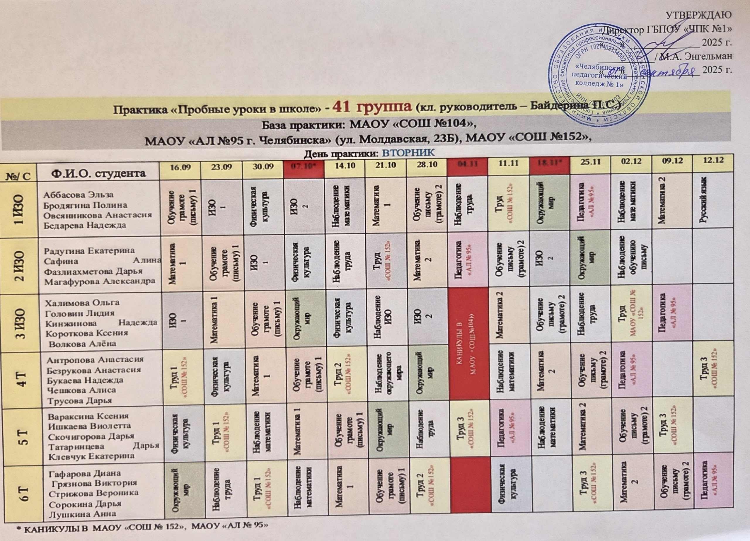 Расписание практической подготовки студентов ГБПОУ «ЧПК №1»