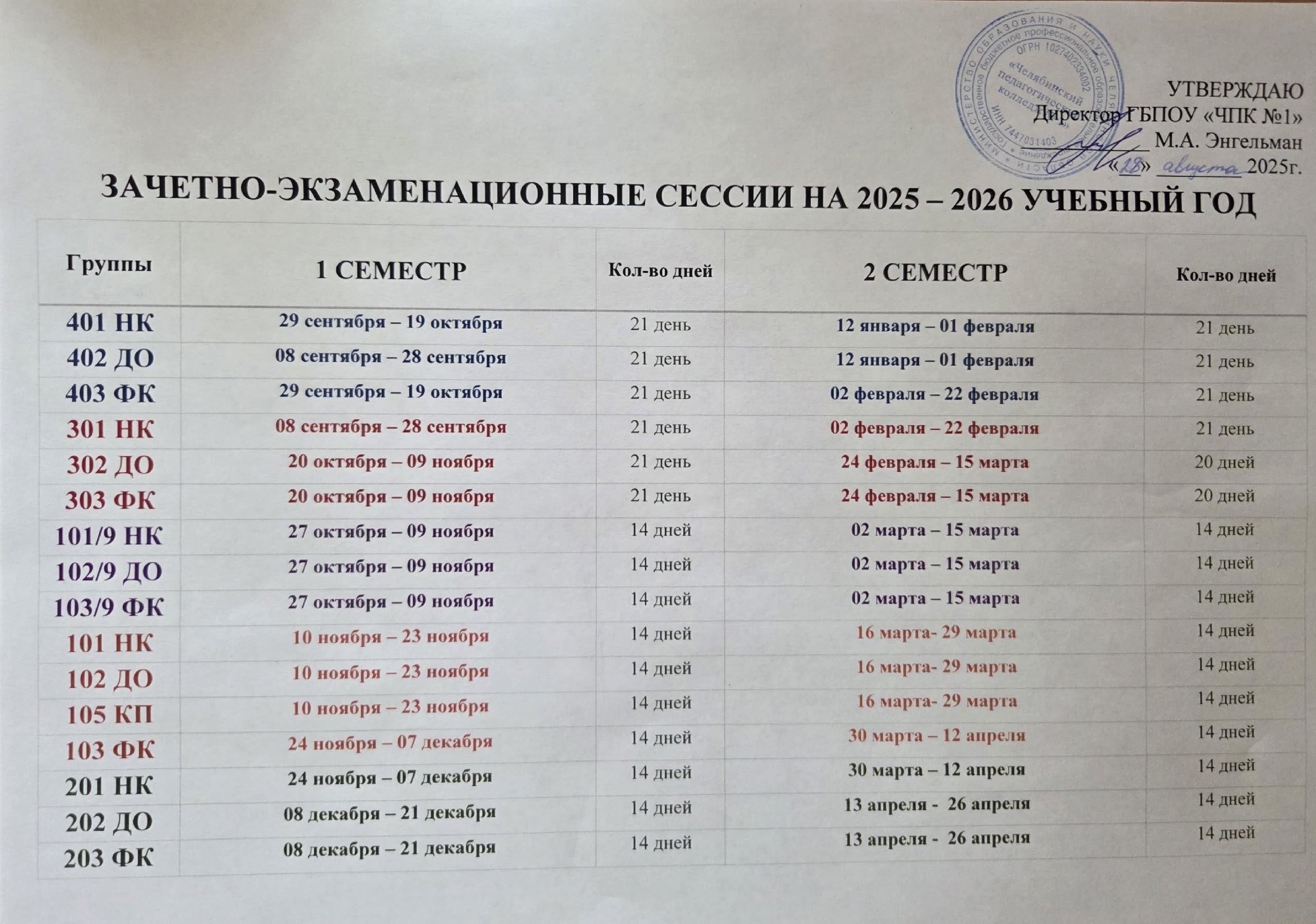ЗАЧЕТНО-ЭКЗАМЕНАЦИОННЫЕ СЕССИИ на 2025-2026 учебный год